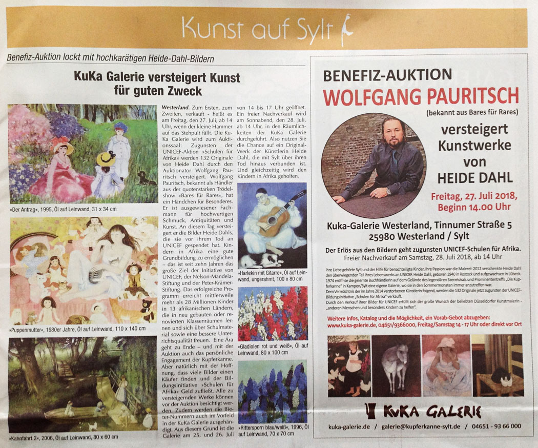 Benefiz-Auktion: Versteigerung von Heide Dahl Kunstwerken zugunsten UNICEF Schulen für Afrika